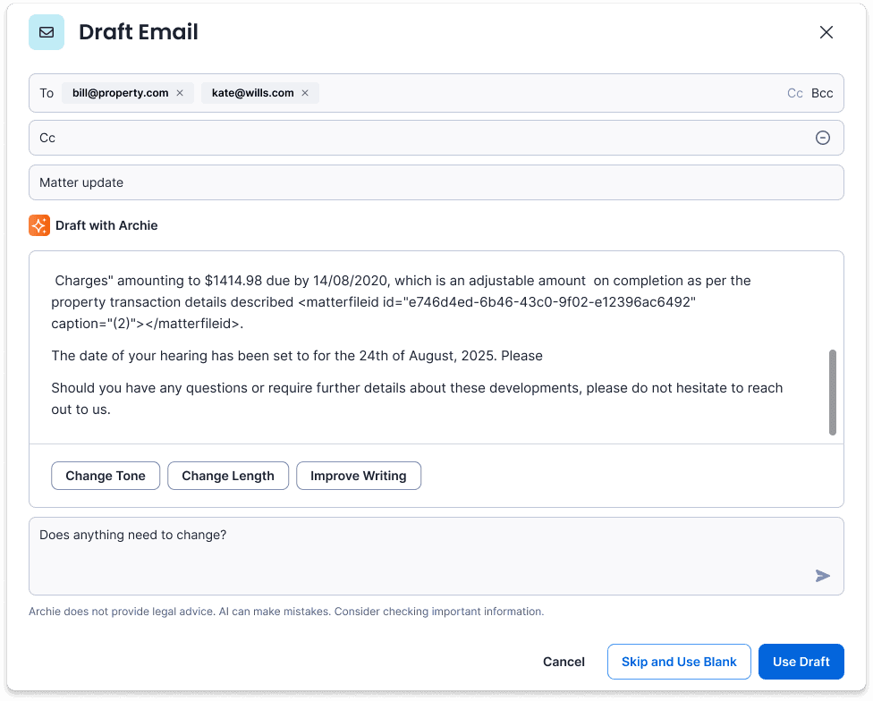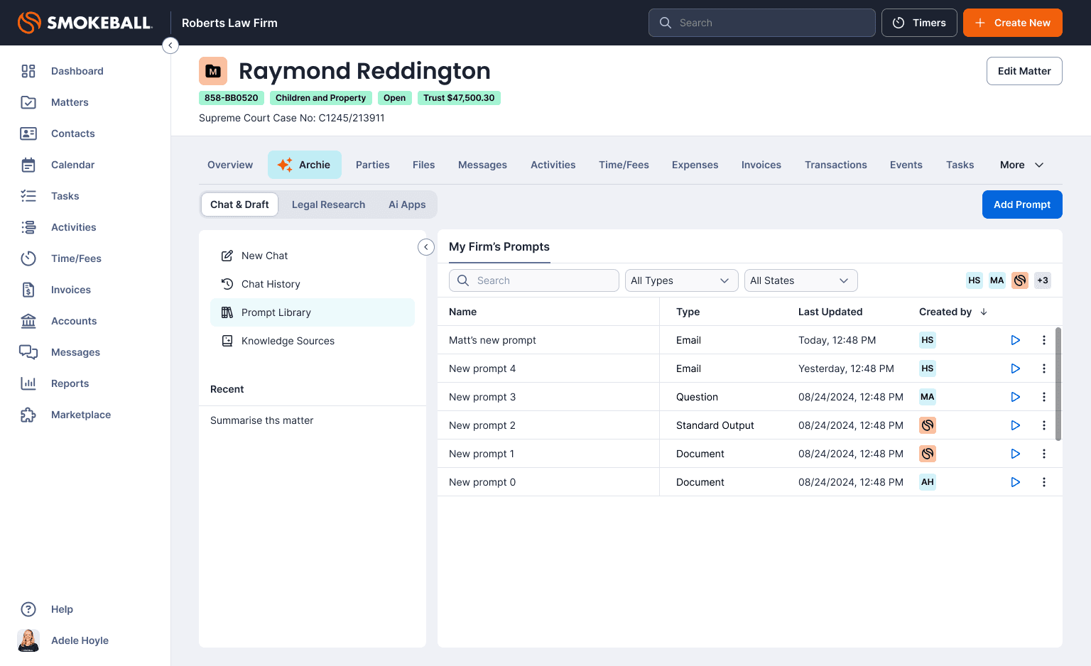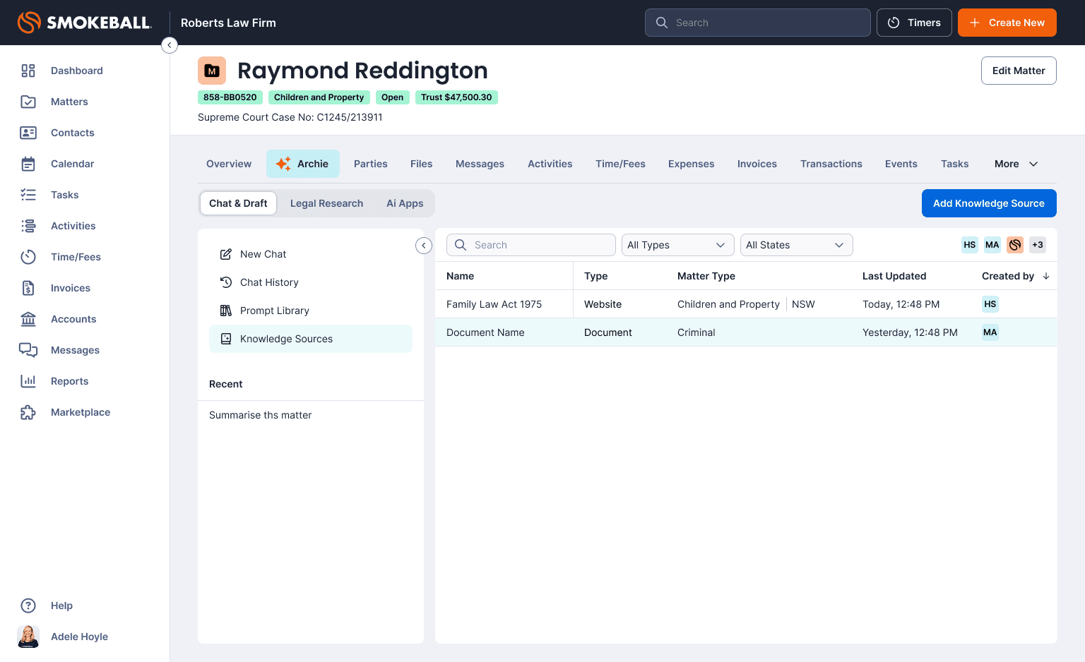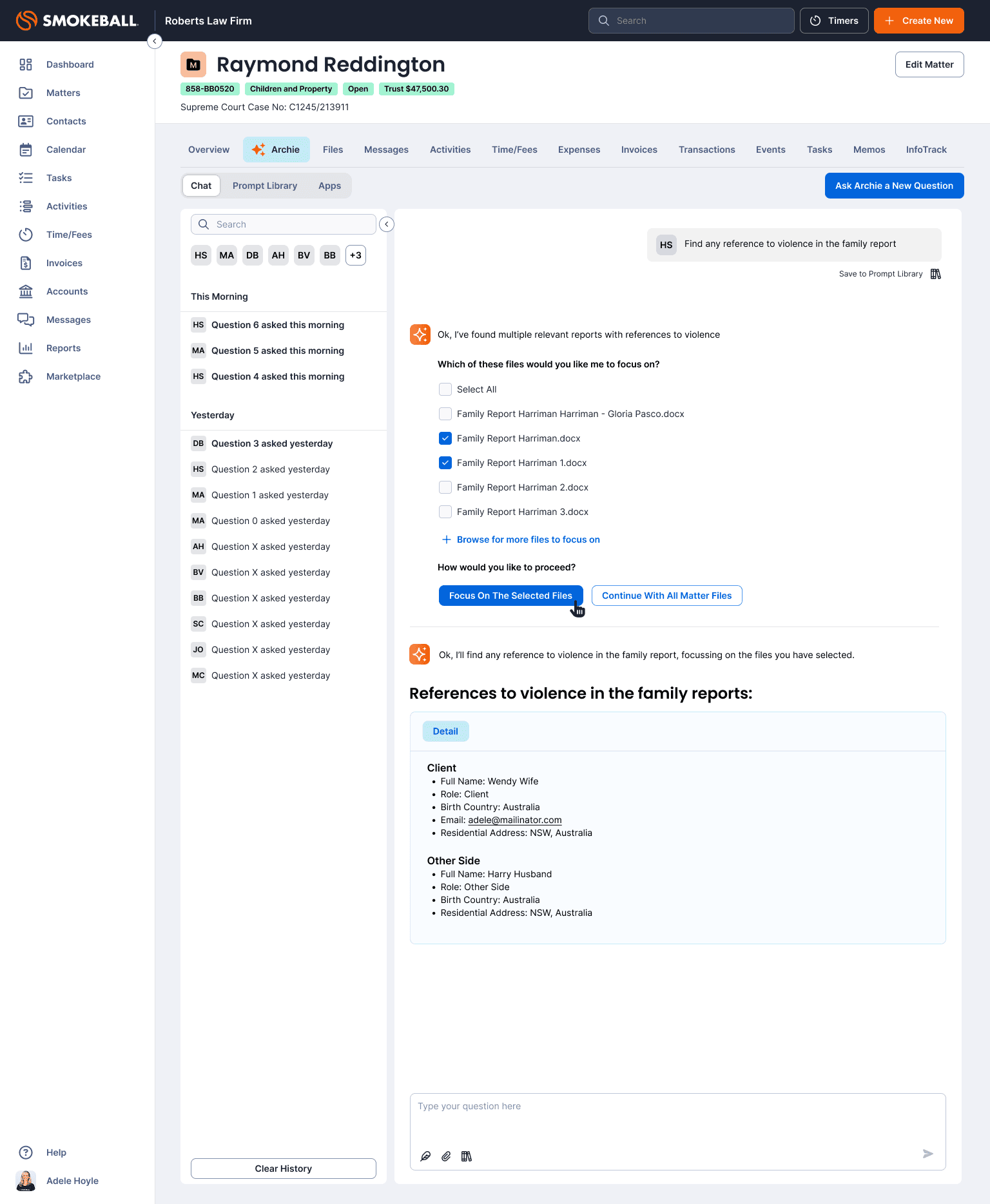 As Head of Product Design, I led the product and experience design of Archie, an AI-powered matter assistant embedded directly within Smokeball.